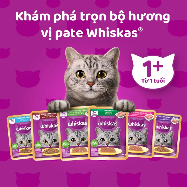 Set of 24 Sauce Food Bags for Adult Cats Whiskas 80g – Complete & Balanced Nutrition for Cats 1 Year Old and up