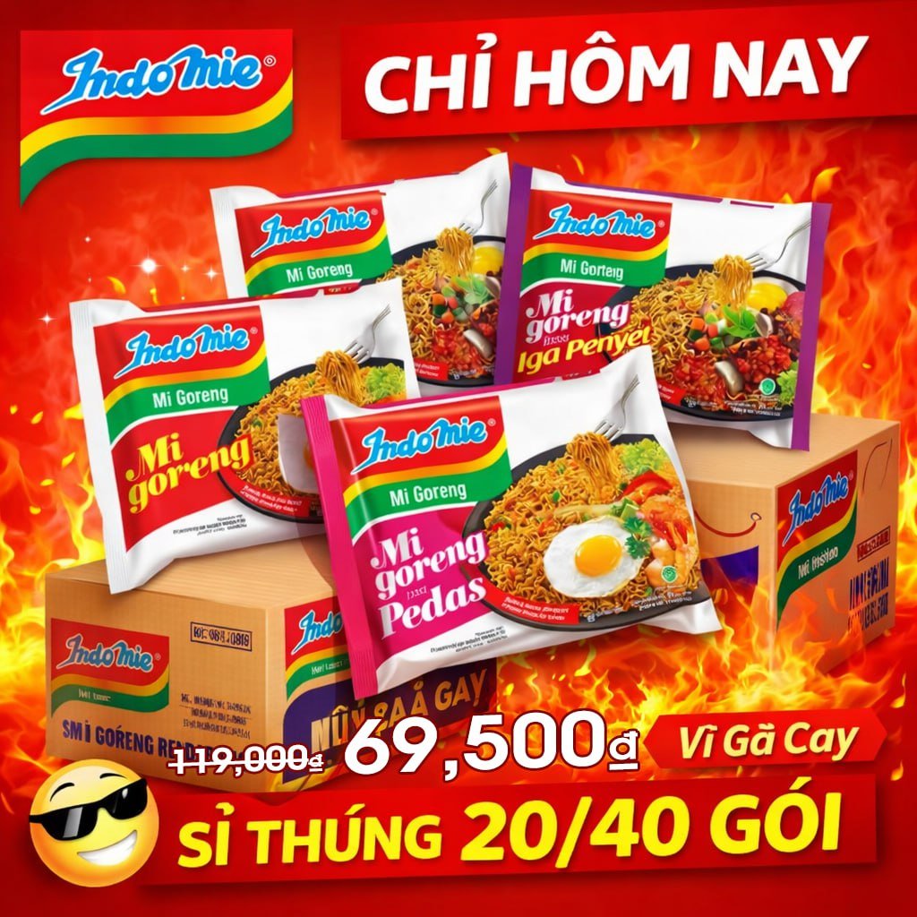 SỈ THÙNG Mì xào khô/ mì trộn Indomie Rasa Ayam Geprek Vị Gà Cay thùng 20/40 gói (HSD 07/2026) 🔥