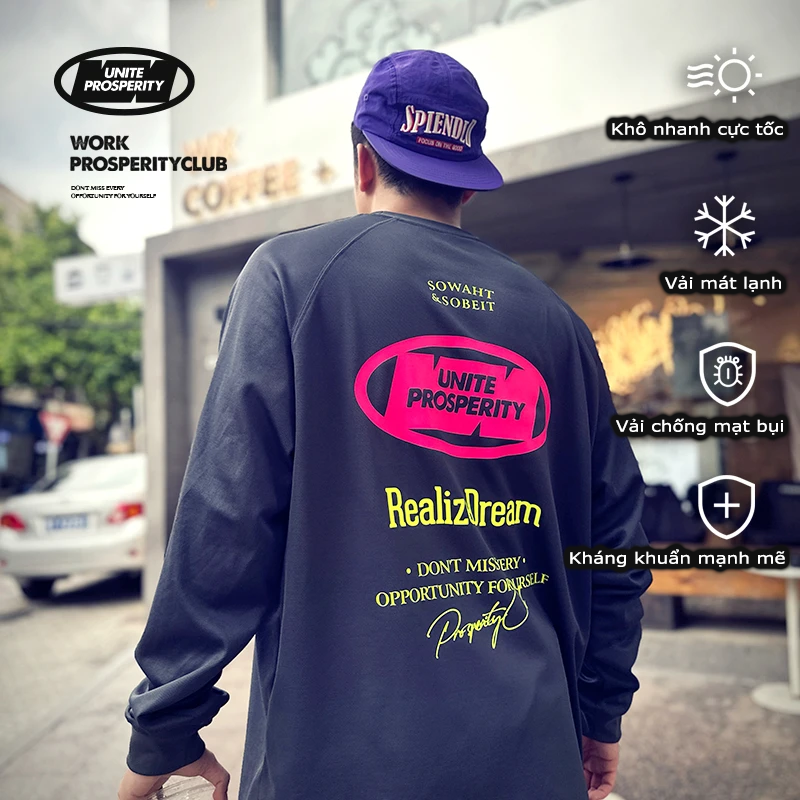 Sản phẩm mới SoWhat Studio: Áo thun khô nhanh, trang phục thể thao ngoài trời, in họa tiết, dài tay, phom rộng