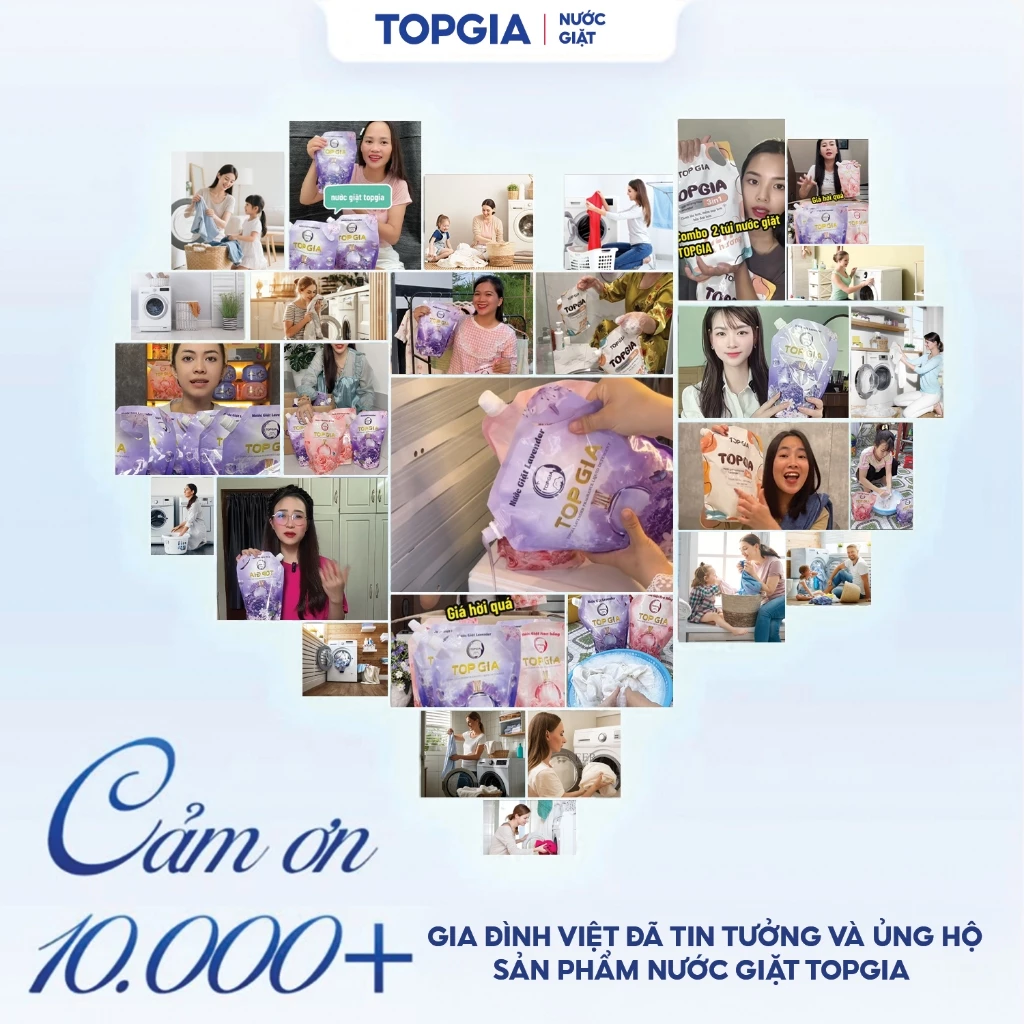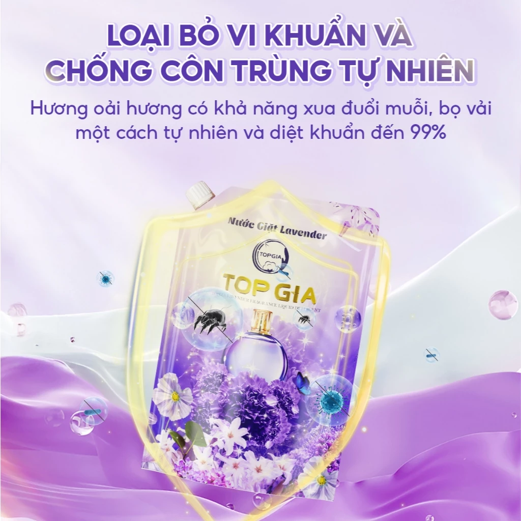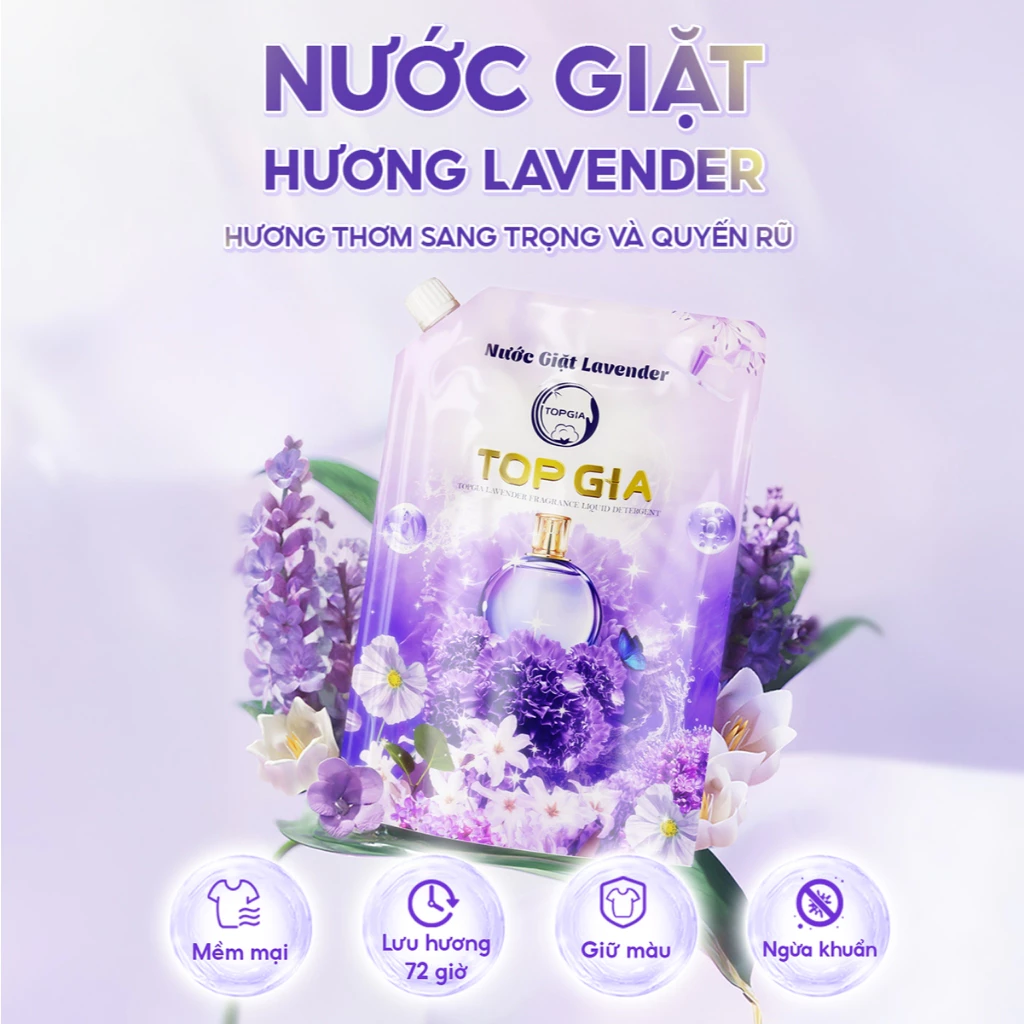 Nước giặt xả TOPGIA hương lavender dịu nhẹ, tẩy sạch vết bẩn, lưu hương 72H, an toàn lành tính