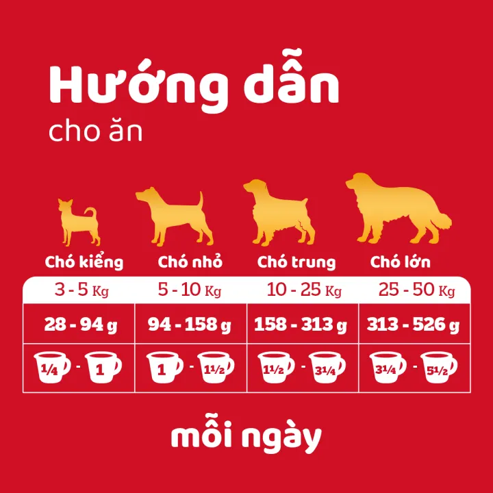 ● Chó 25-50 kg: 314-528 g thức ăn cho chó mỗi ngày